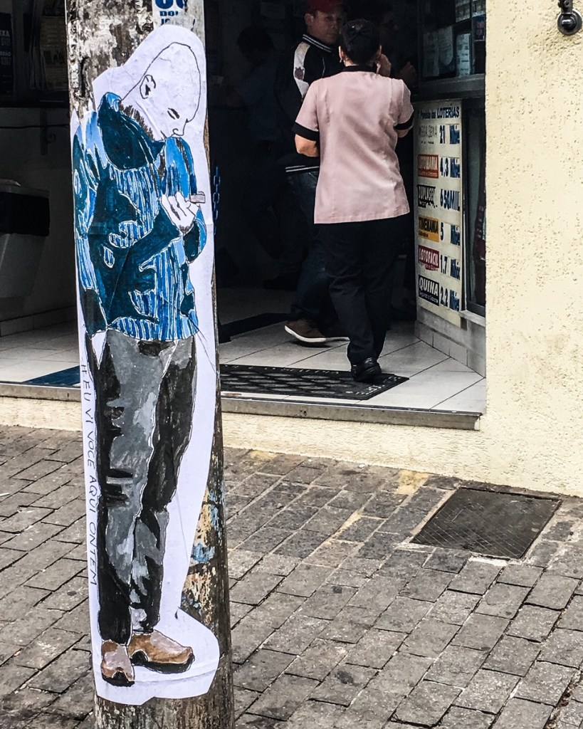 Eu vi você aqui ontem, 2017/21Intervenção urbanaLambe lambe por muros de São Paulo