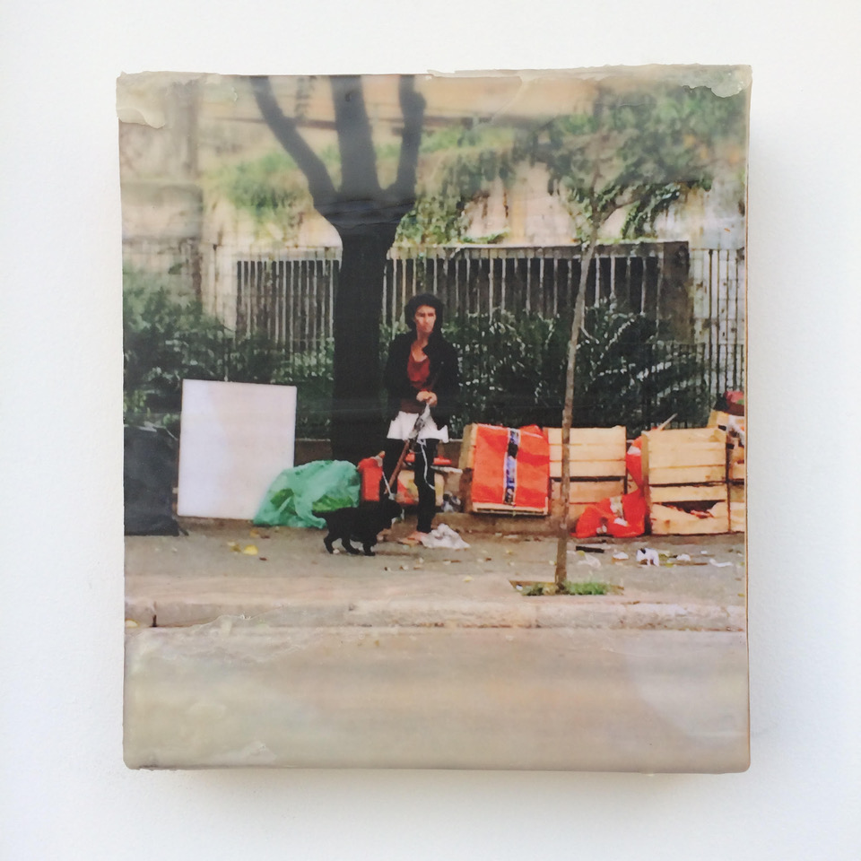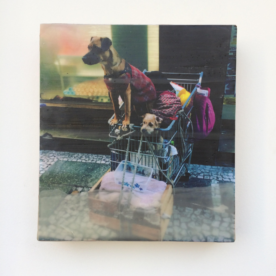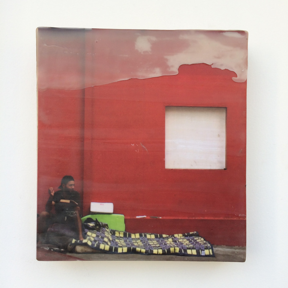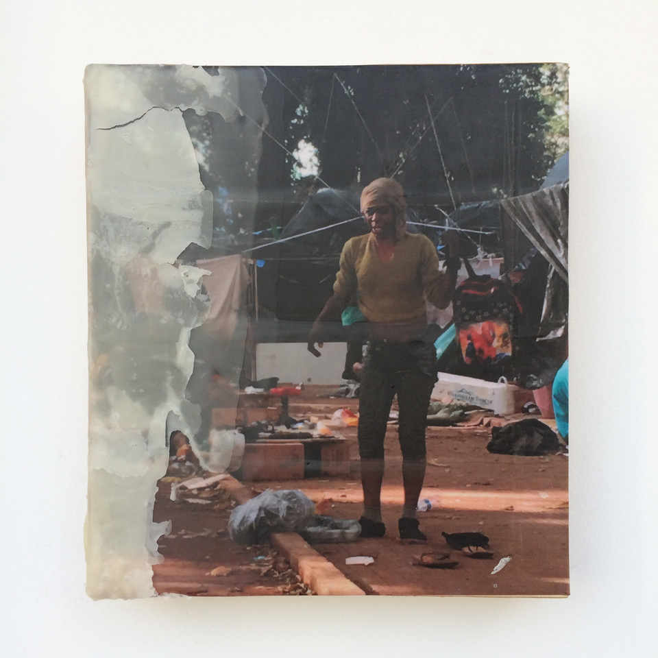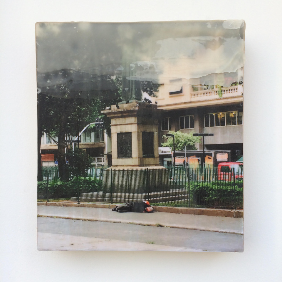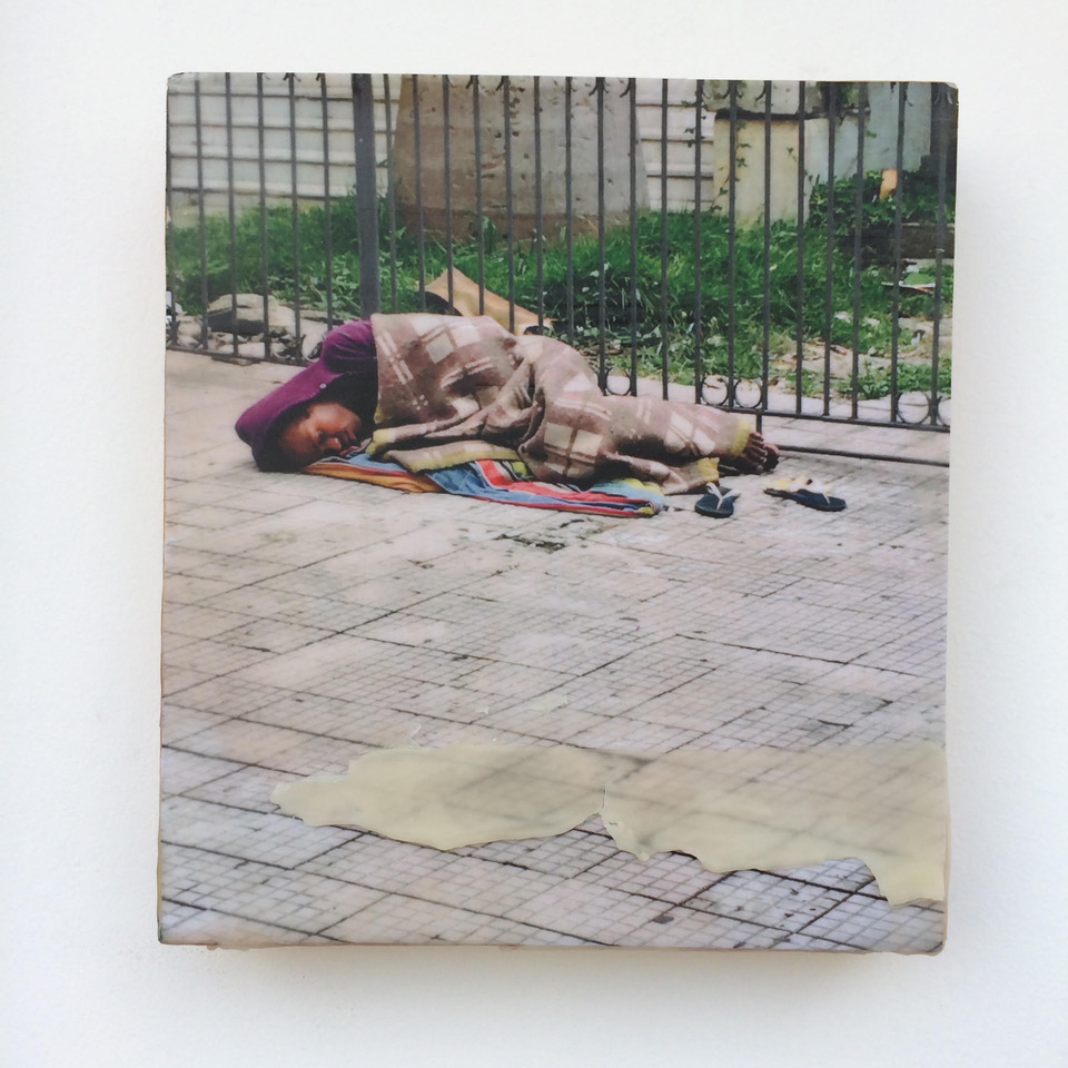 Fotografia e cera sobre madeira