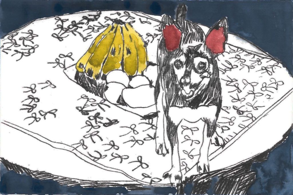 Fiquei lá andando de uma ponta à outra, um tempão. Foi quando ela apareceu na cozinha. O jogo já havia terminado. Os fogos ainda soavam lá fora, mas cada vez mais espaçados e distantes. Isso deu espaço para ouvirem meu desespero. Quando ela entrou no cozinha eu tremi. Um misto de alegria e de pânico. Pânico porque eu estava bem em cima da mesa! Um lugar meio que sagrado nessa casa: sempre enfeitada, sempre com frutas, onde todos se reúnem para almoçar todo domingo. E eu ali, com minhas patinhas que já haviam passeado até lá no lote vago do vizinho.